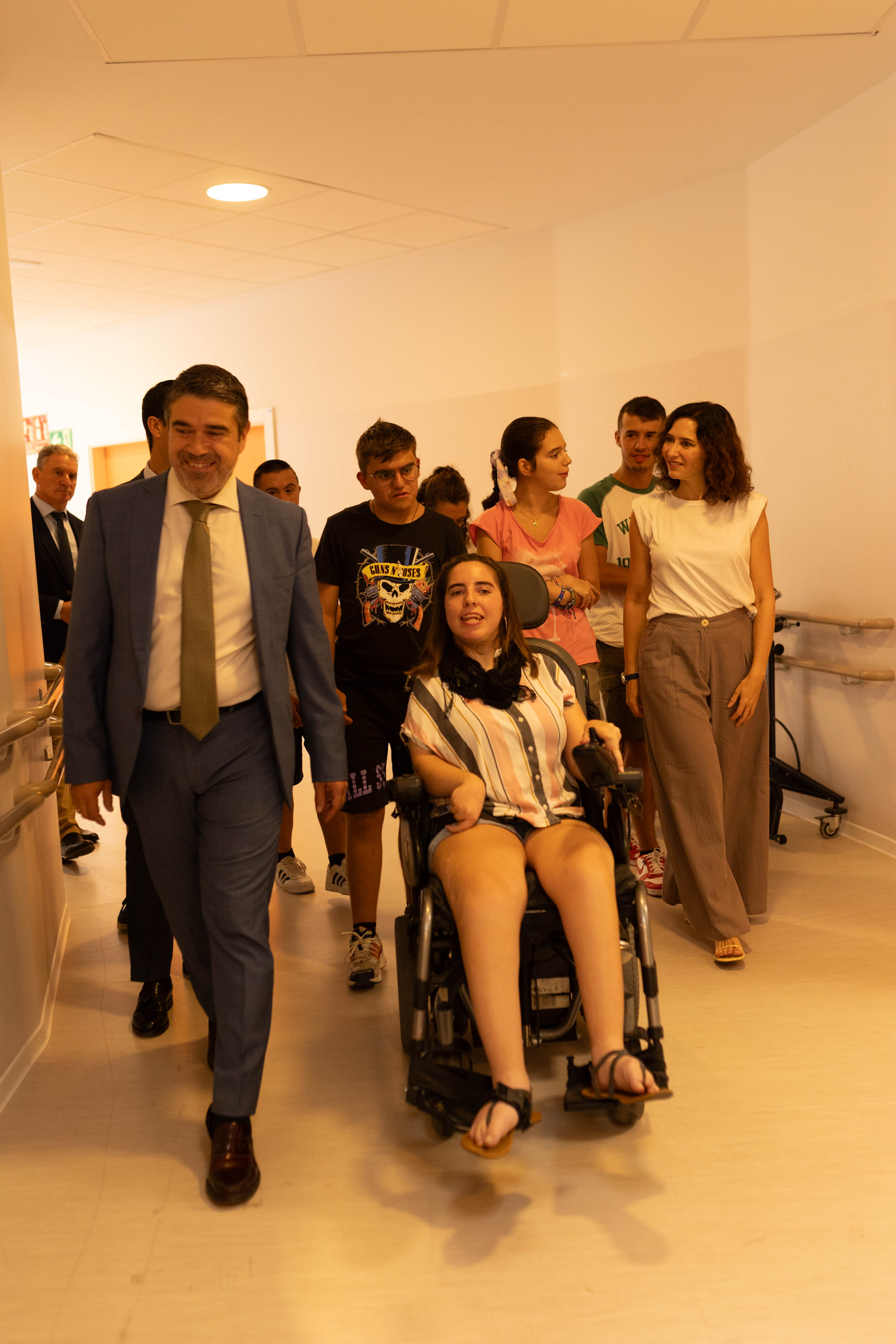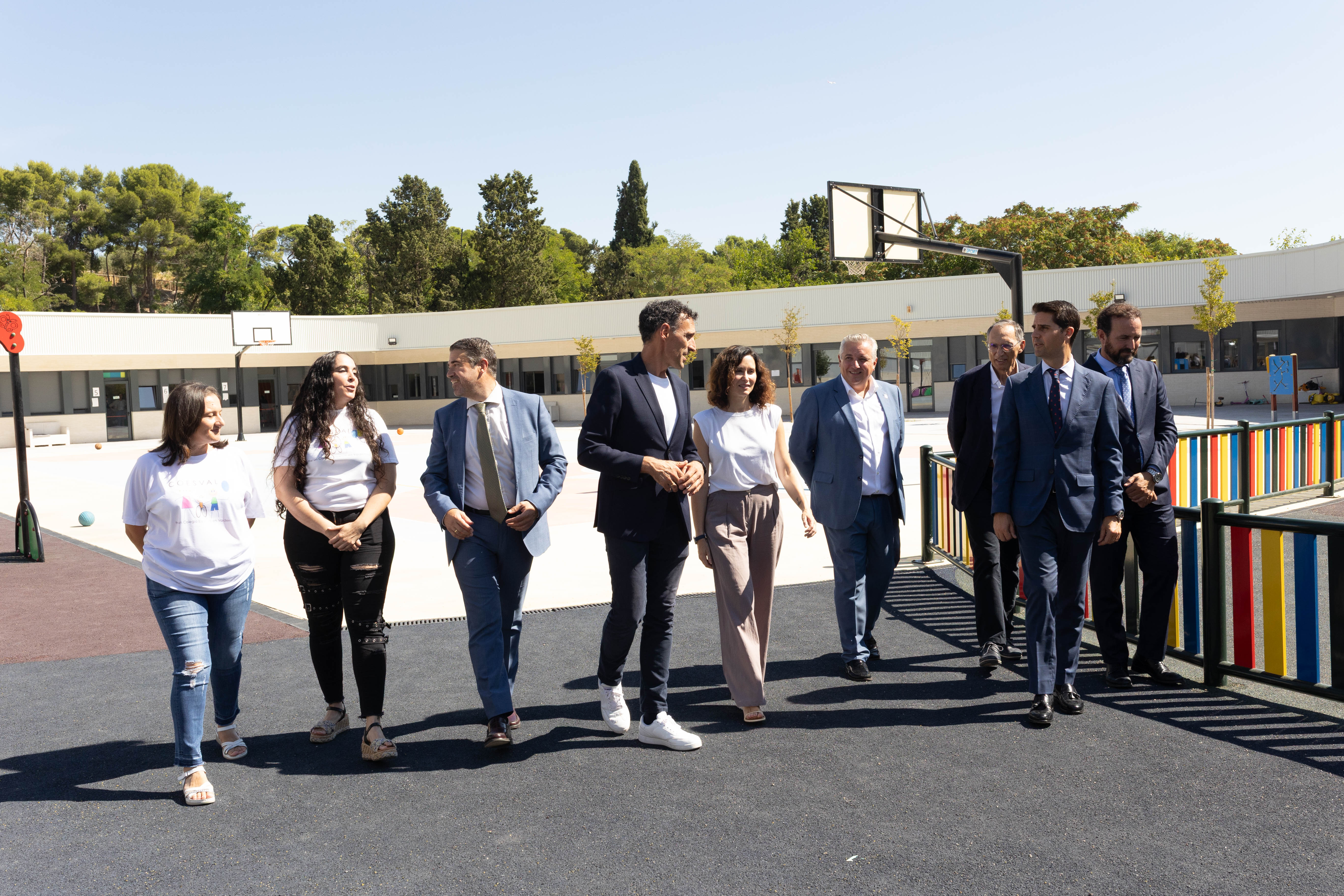 La presidenta de la Comunidad de Madrid, Isabel Díaz Ayuso, ha visitado hoy el Centro de Educación Especial Duque de Ahumada, que atiende a 133 alumnos con discapacidad severa que requieren atención especializada y adaptada a sus necesidades educativas especiales. Estuvo acompañada por el alcalde, David Conde, el consejero de Educación, Emilio Viciana, el director del centro, Marcos Jiménez, y varios miembros de la asociación COESVAL.