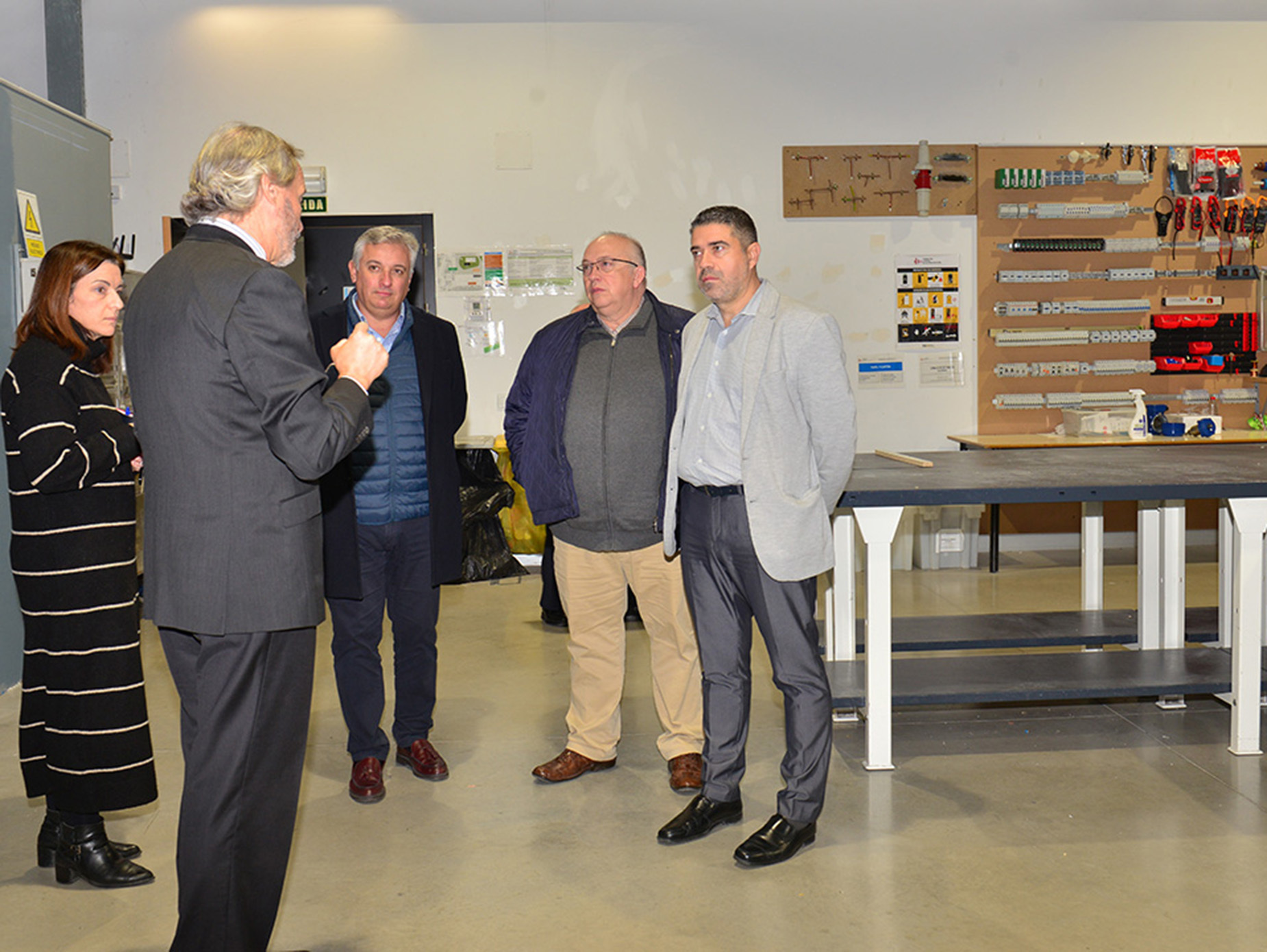 Durante la visita, los asistentes han recorrido con interés todos los espacios del centro de formación, incluyendo los talleres de albañilería, electricidad o soldadura, donde han podido conocer a los futuros soldadores a pleno rendimiento.