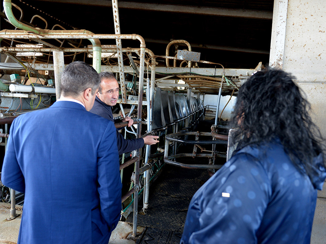 La explotación agropecuaria Hiflomar SAT de Valdemoro está regentada por los hermanos Miguel Ángel, José María y María Jesús Flores López,  que recibieron al primer edil y a los concejales Juan Carlos Vicente y Elsa Fernández-Gil para recorrer las instalaciones de esta granja, ubicada en la avenida de las Canteras, que junto a otras tres ganaderías madrileñas son impulsoras de la primera marca de leche propia de la capital y forman parte de la Cooperativa Lechera Madrileña y de la Asociación Frisonas de Madrid.