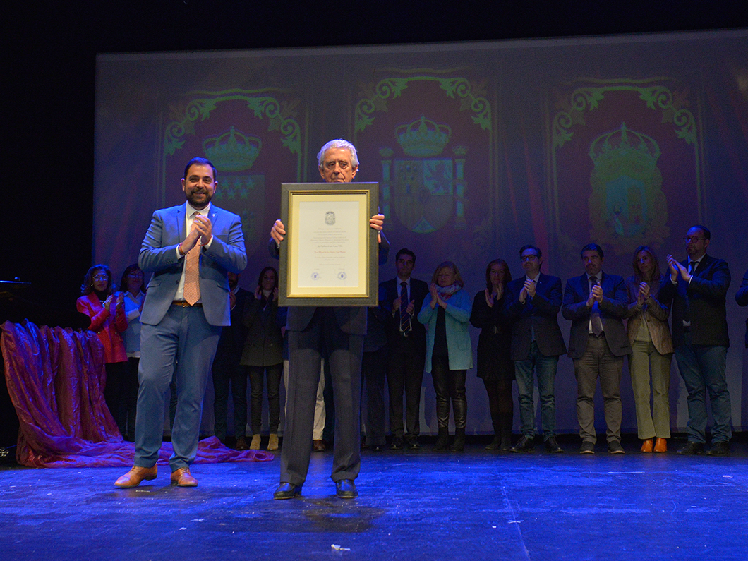 El Teatro Municipal Juan Prado acogió la tarde del pasado 20 de enero el emotivo homenaje al comunicador Miguel de los Santos San Martín donde el periodista y escritor nacido en Valdemoro en 1936 recibió el título y la medalla de Hijo Predilecto de la Villa, en presencia de toda la Corporación municipal y de numerosos familiares, amigos y compañeros de profesión del homenajeado, además de vecinos y vecinas de la localidad.