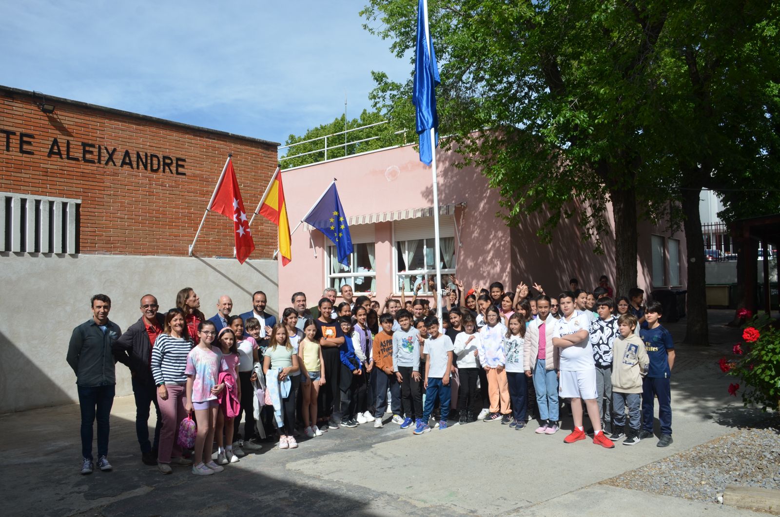 Valdemoro se ha sumado a la iniciativa de la Dirección General de Cooperación con el Estado y la Unión Europea y la Dirección General de Reequilibrio Territorial de la Comunidad de Madrid con un acto celebrado en el CEIP Vicente Aleixandre, donde se ha procedido a izar la bandera de Europa que la Comunidad de Madrid ha hecho llegar al Consistorio.