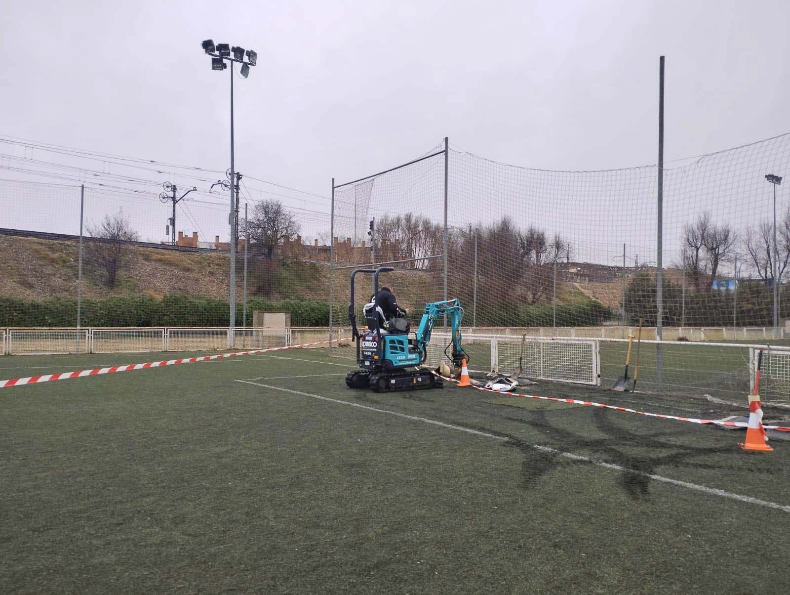 Ya han comenzado los trabajos para subsanar las deficiencias existentes en los campos de fútbol 7 ubicados en el Polideportivo Municipal de Ronda del Prado. Dos de estos campos que permanecían cerrados debido al mal estado del césped artificial y a la ausencia de porterías volverán a estar operativos en menos de un mes para la práctica del fútbol.