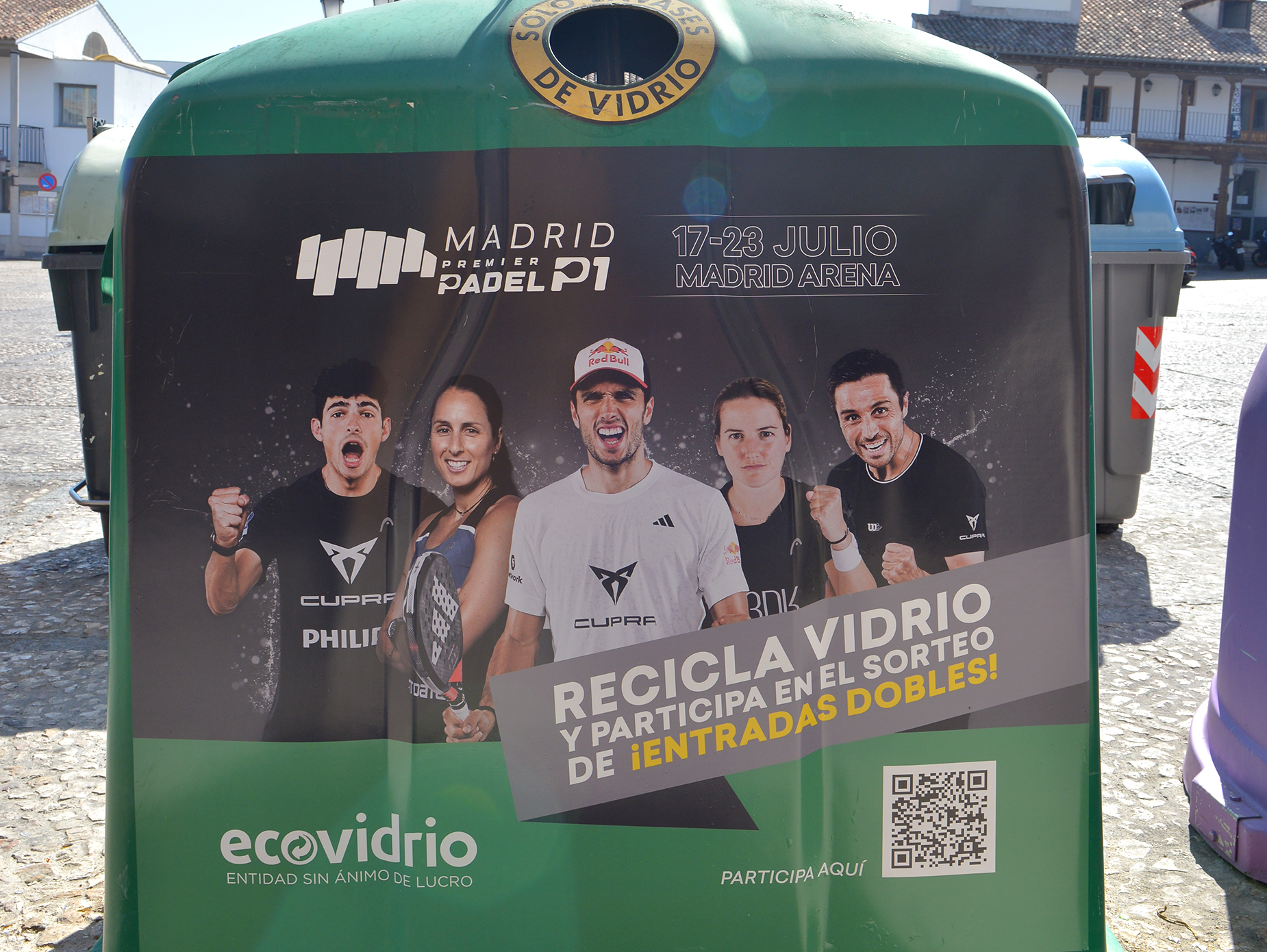 Quienes quieran asistir de forma gratuita a ver a las estrella mundiales del pádel en el torneo que tendrá lugar en Madrid del 17 al 23 de julio, solo tienen que depositar sus envases de vidrio en uno de los cinco contenedores con la imagen de la campaña y registrarse escaneando el código QR impreso en los mismos para entrar en el sorteo de las entradas.