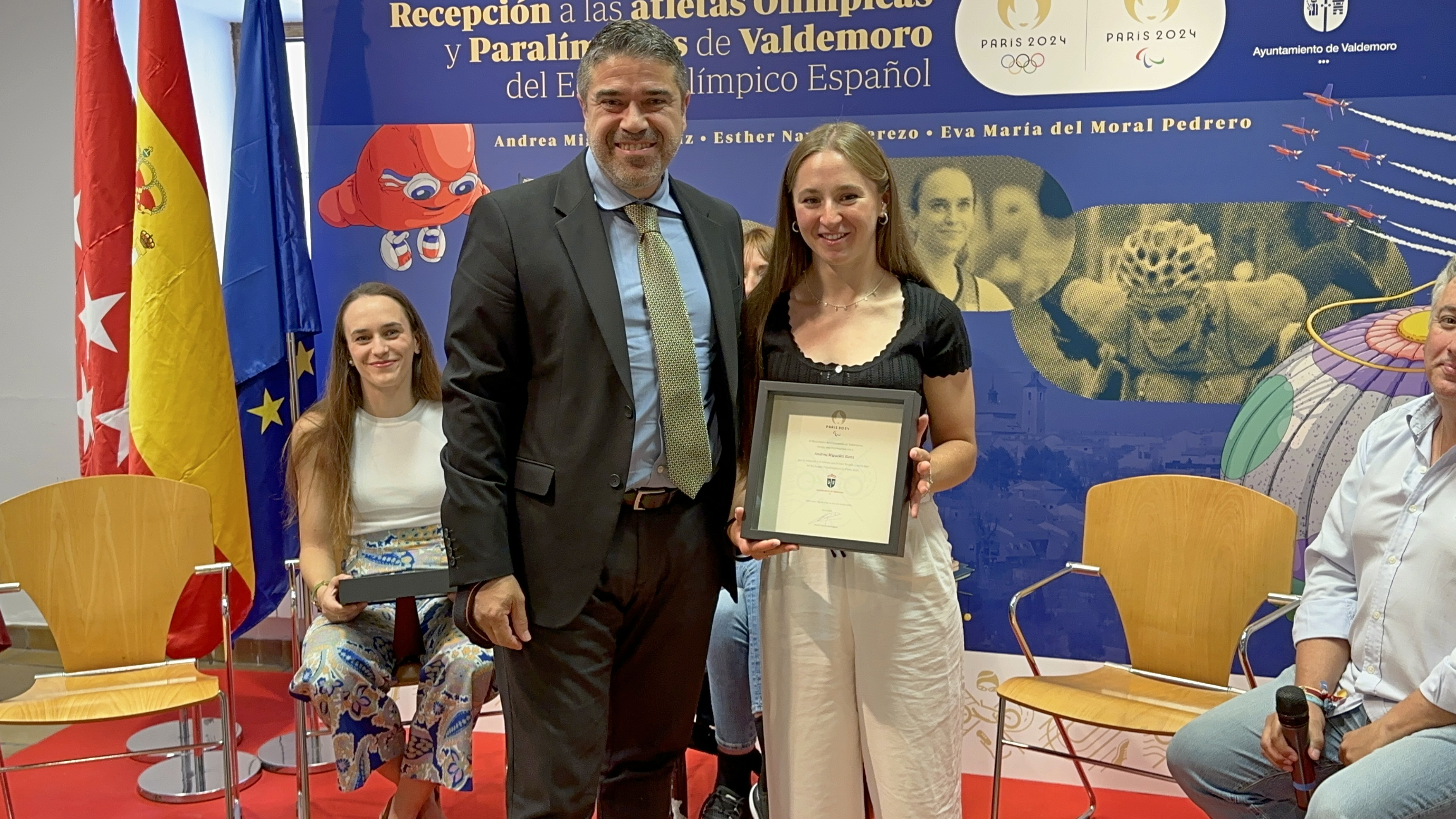 El alcalde, David Conde, cerró este reconocimiento por el esfuerzo y el talento que han llevado a Esther Navero, Andrea Miguelez y Eva Moral -las tres nacidas un 30 de julio- a participar en los Juegos Olímpicos y Paralímpicos de París 2024. Conde les transmitió el cariño de toda la ciudad y el agradecimiento por llevar el nombre de Valdemoro a unos juegos olímpicos. Tras recordar las renuncias, sacrificios, empeño y trabajo que conlleva una trayectoria deportiva, el alcalde leyó el fulgurante palmarés de las tres atletas y las emplazó a la vuelta "para homenajearlas como se merecen".