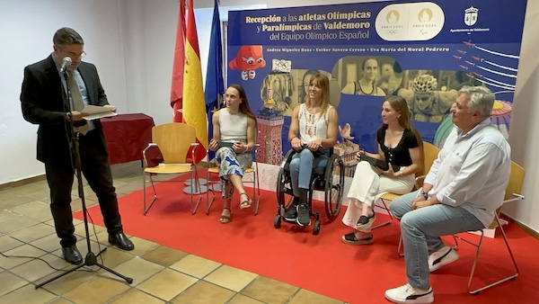 El concejal de Educación y Deportes, Andrés Pous, fue el encargado de dar la bienvenida a las deportistas y destacar el talento valdemoreño antes de invitarlas a que compartieran con el público los pormenores de la noticia de su participación olímpica.