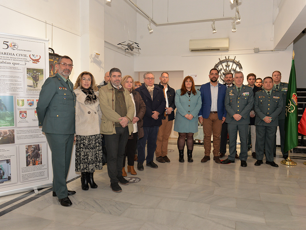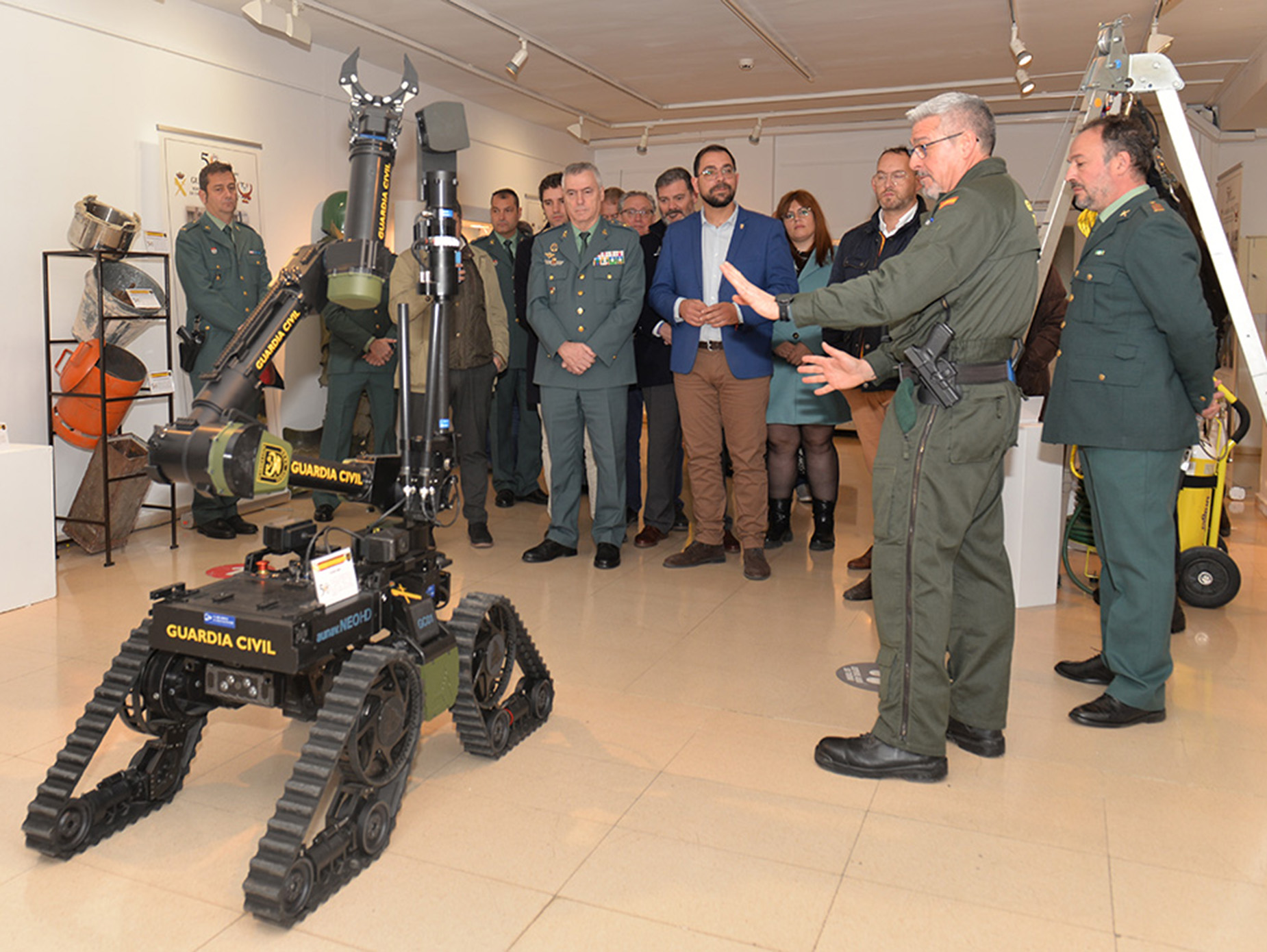 El alcalde, Sergio Parra, junto a los generales jefes del Mando de Operaciones de la Guardia Civil, Félix Jesús Blázquez, y de las Unidades Especiales y de Reserva, José Antonio Iglesias Pollo, han asistido hoy a la inauguración de la exposición conmemorativa del 50 aniversario del SEDEX-NRBQ. La muestra, organizada con motivo de la celebración del medio siglo de la creación del Servicio de Desactivación de Explosivos y Defensa Nuclear, Radiológica, Biológica y Química de la Guardia Civil, se podrá visitar hasta el 3 de marzo en el Centro Cultural Juan Prado.