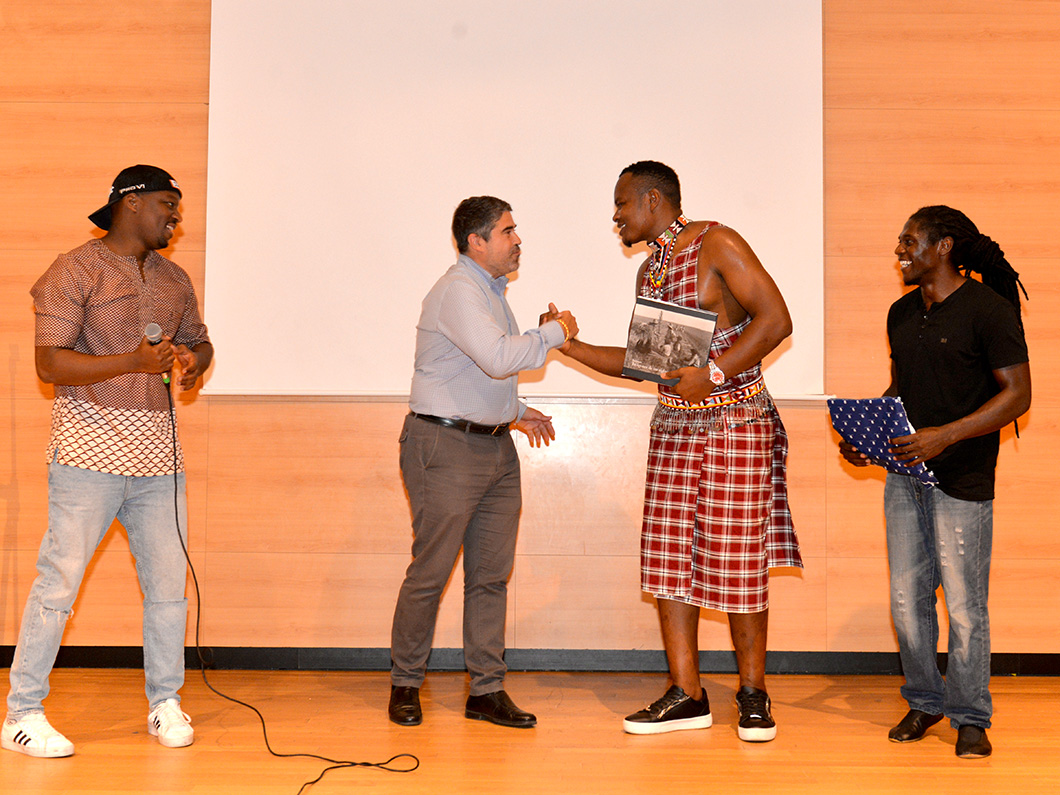 El primer edil, que estuvo acompañado por los concejales de Gobierno José Romero, Samuel Hernández y Andrés Pous y miembros de todos los grupos políticos municipales, tuvo la ocasión de agradecer a Bunny Asila, director de Eljohns Music Empowerment Village, y a Jesús Águila, director de la escuela de Valdemoro, la puesta en marcha de esta iniciativa denominada Kenyan Music Week, en la que han tenido lugar clases, muestras y conciertos con los ritmos de este país del África Oriental como protagonistas. En este sentido, esta misma mañana ofrecieron una actuación de la que, además de los representantes municipales, pudieron disfrutar en torno a un centenar de estudiantes de 3º de la ESO del IES Villa de Valdemoro.